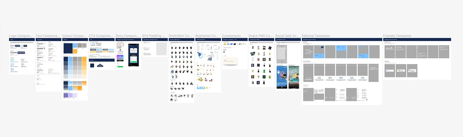 Whenever we started a new project, we always created assets from scratch. This involved creating a new Illustrator file and consistently referring back to previous ones for guidance. As a result, we often ended up repeatedly designing identical asset components, like text, which varied to suit the visuals.